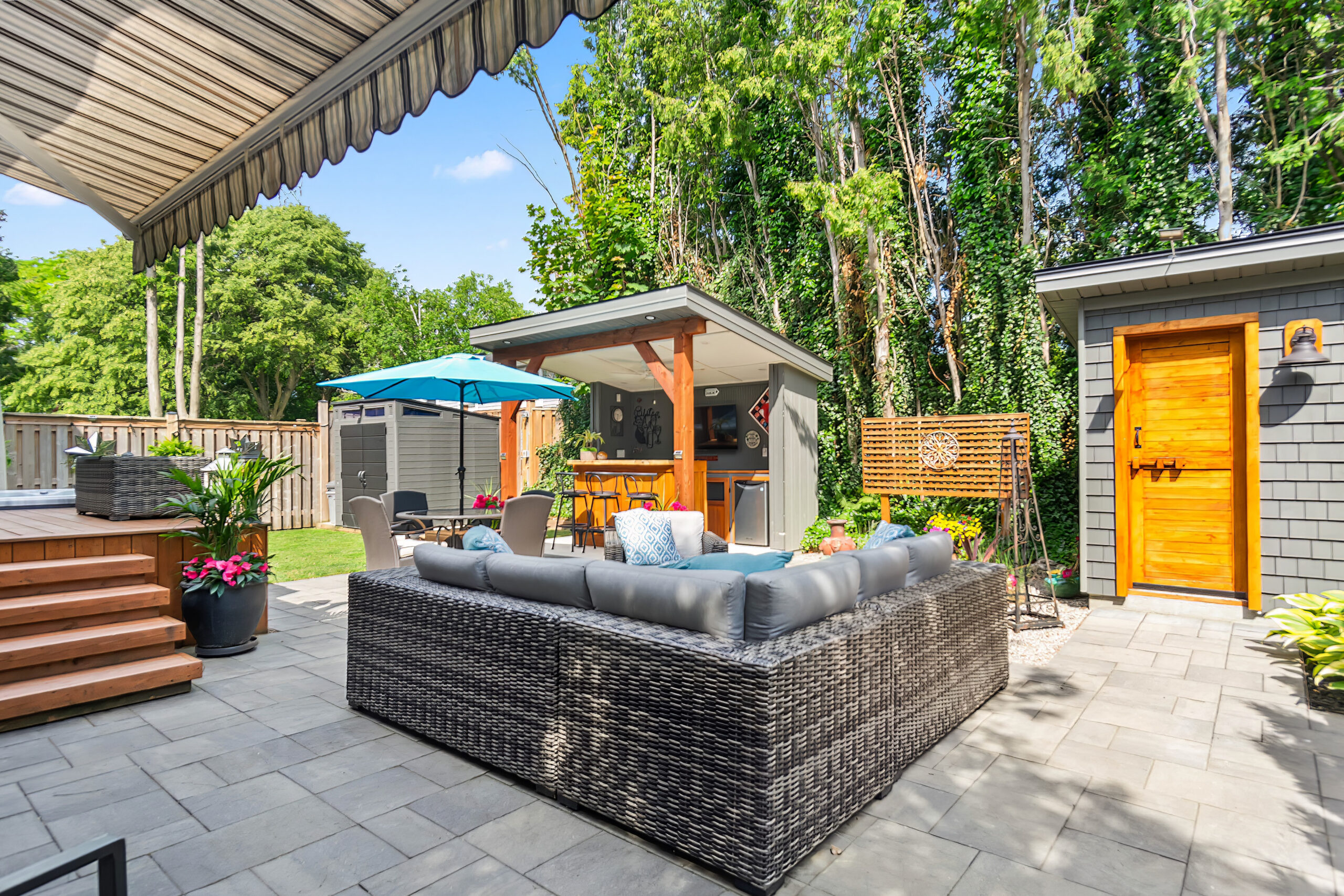 Welcome to 1389 Olga Drive, a fully renovated 2-storey home in the heart of Burlington’s sought-after Brant neighbourhood-just steps to downtown, the lakefront, and top-rated schools. With unmatched curb appeal and a thoughtfully redesigned layout, this home offers 3+1 bedrooms, 3 full baths, engineered hardwood floors, and stunning indoor-outdoor living. The main floor features a spacious bedroom, stylish 4-pc bath, and a large living room with a cozy gas fireplace. The custom white kitchen boasts quartz counters, under-cabinet lighting, stainless steel appliances, and a separate dining area that walks out to a large backyard. Upstairs, the bright and airy second level includes two bedrooms, with a stunning primary suite featuring a walk-in closet, spa-like ensuite with walk-in glass shower, and a bonus office or nursery space with trendy shiplap walls. The fully finished lower level has a second kitchen, a 4th bedroom, extra living space with an electric fireplace, additional storage, and a cold cellar—making it ideal for an in-law or income suite. Outside, the entertainer’s backyard is a rare find-featuring a hot tub, wet sauna, custom cabana, built-in bar, large deck, and natural gas hookup for BBQ—designed for year-round enjoyment and unforgettable gatherings. Located minutes from Spencer Smith Park, shops, cafes, and the waterfront, this home offers quick access to the Burlington GO Station and major highways (QEW/403/407) for easy commuting. Zoned for highly rated schools and nestled on a quiet street, it’s the perfect blend of luxury, location, and lifestyle. Don’t miss your chance to own a move-in-ready gem in one of Burlington’s most vibrant, walkable communities.