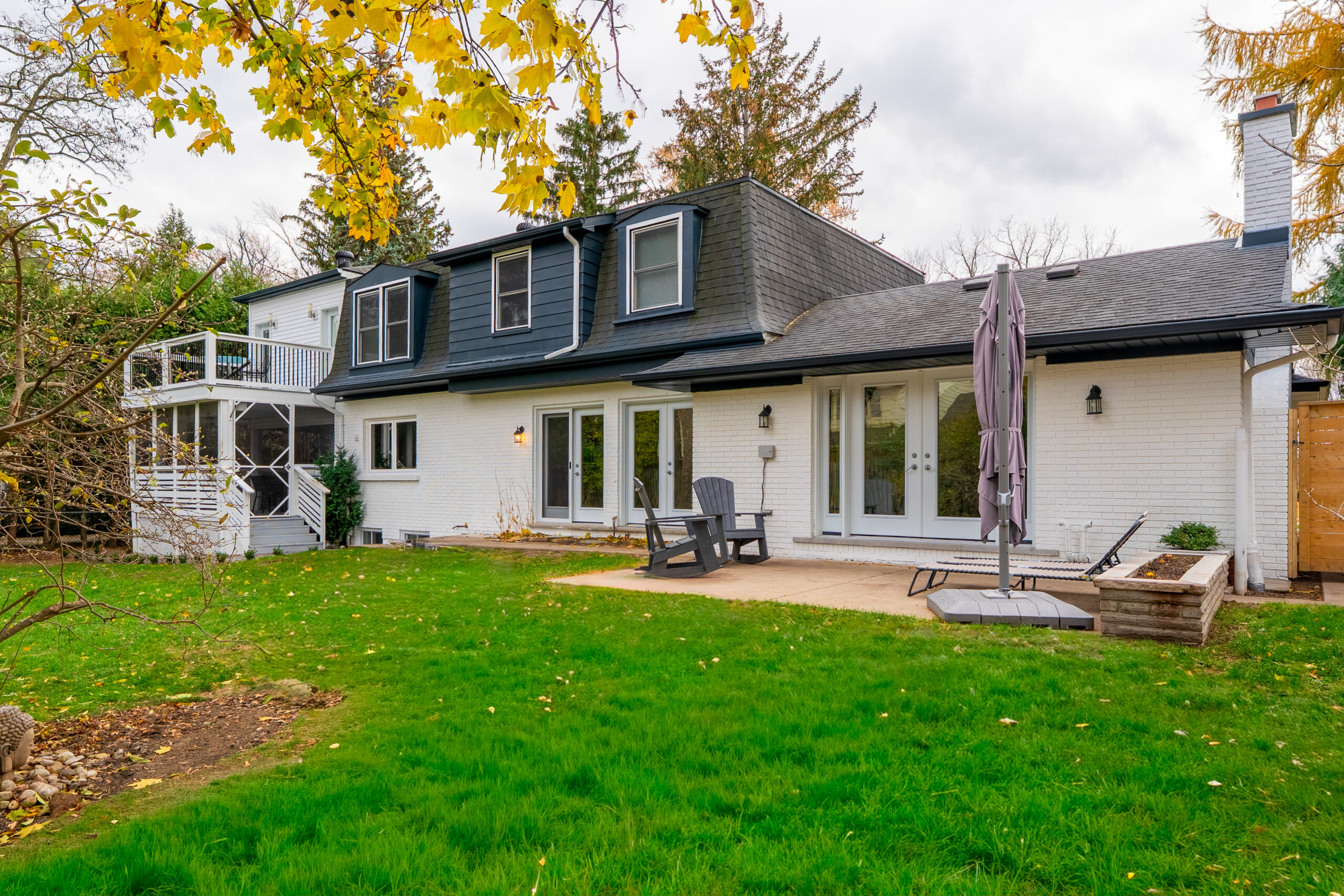 Prepare to fall profoundly in love. Nestled on one of Burlington’s most enchanting tree-lined streets, just steps from Lake Ontario, 149 Fruitland Avenue is a masterpiece of timeless charm and elegance. This stunning 4+1 bed, 2.5 bath Roseland beauty offers over 4,000 sq. ft. of refined living space on a fully irrigated and beautifully landscaped west facing lot. Step inside to soaring ceilings, abundant natural light, and an effortless open-concept flow. The gourmet chef’s kitchen boasts stainless steel appliances and a grand granite island. With wide plank hardwood flooring throughout the expansive living and dining areas feature French doors and a wood-burning fireplace with stone surround, while the sunken family room offers cozy charm. Upstairs, four spacious bedrooms provide serene retreats. The luxurious primary suite includes a spa-like 5-piece ensuite, dual his/her closets, and a private balcony with peek-a-boo lake views—perfect for morning coffee. The fully finished lower level adds a fifth bedroom (ideal for guests or teens), a large recreation room perfect for a gym, and a media den with a huge hidden storage room. Outside, enjoy a screened porch and park-like backyard framed by mature trees—your private oasis for al fresco dining or quiet relaxation. Rarely available in this coveted pocket and falling within the highly desirable Tuck school catchment area, this exceptional turn-key home is not one to be missed!
