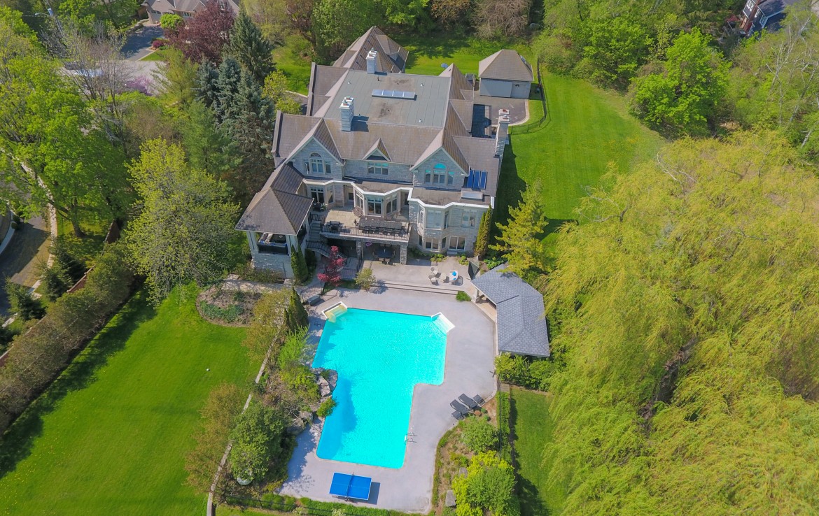 Truly one of Oakville’s most spectacular estates, nestled at the bottom of a desirable cul de sac amidst almost 2 acres of wooded privacy, in southeast Oakville. Spacious and bathed in natural light, this grand residence offers over 15,000 square feet of finished living space, spanning three levels. The formal living and dining rooms each have French doors leading from the impressive foyer with its 22.5’ ceiling. The heart of the home, the kitchen, has an oversized breakfast area and a walk-in pantry. A Great Room, children’s playroom, homework room, mud room, wine cellar, office/library and 2 powder rooms complete the main level. The upper level has 8 bedrooms, including a master bedroom retreat and a nanny/guest suite. There are 5 bathrooms, of which 3 are ensuite, plus a laundry room on this level. The lower level has a walk-out and features 3 additional bedrooms, a large games room, a recreation room with fireplace, an exercise room, cold cellar and a second laundry room. There are multiple walk-outs to grand stone covered terraces that overlook the private gardens and the outdoor oasis with its massive pool, cabana area and gas fireplace. This home is a Bill Hicks masterpiece, constructed of stone and steel. It also features a triple and a single garage for up to 4 vehicles plus a circular driveway with a portico drive through and parking for an additional 12 cars. This magnificent ‘one of a kind’ estate home is for those who value exclusivity and the ultimate in privacy.