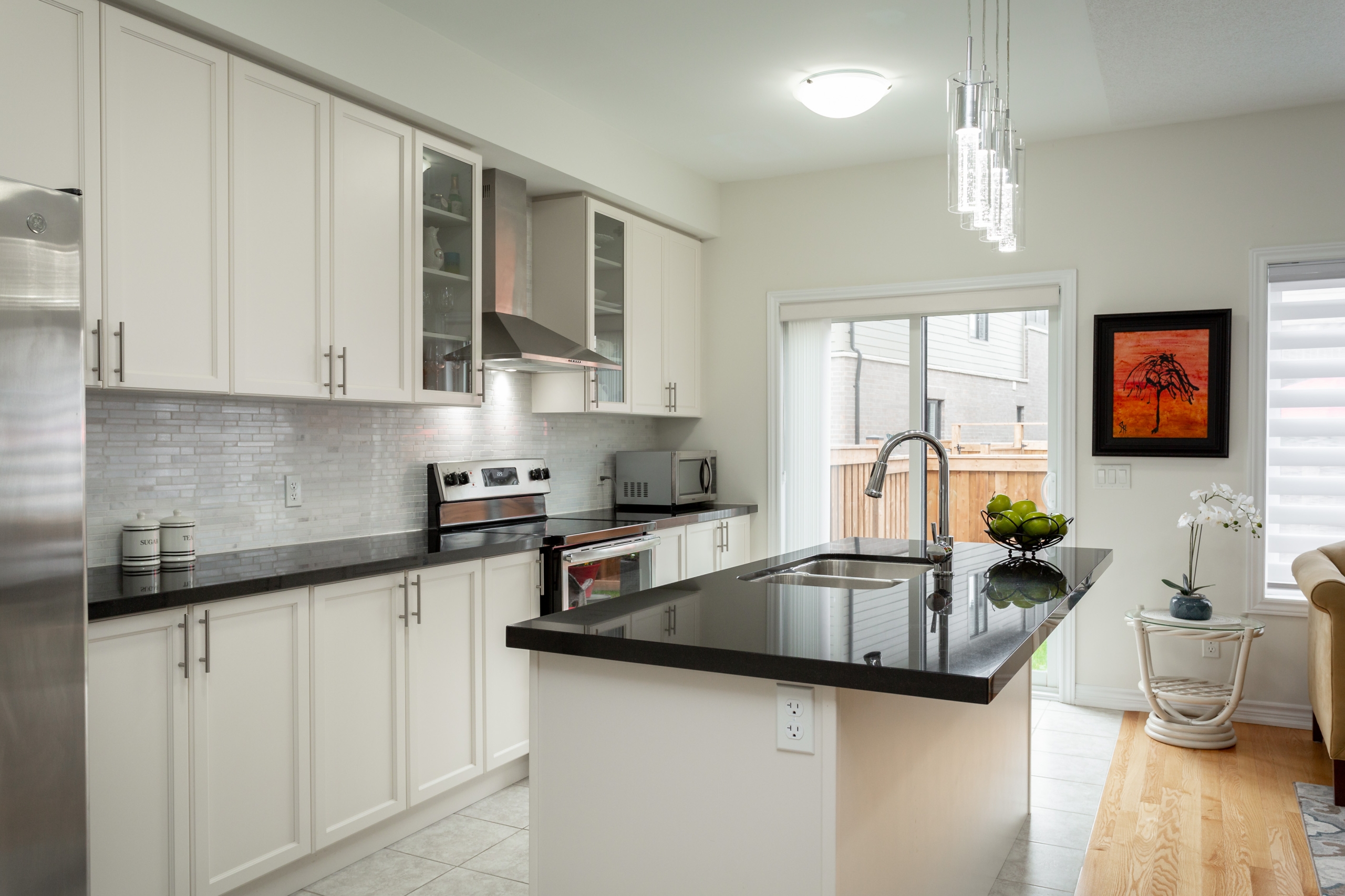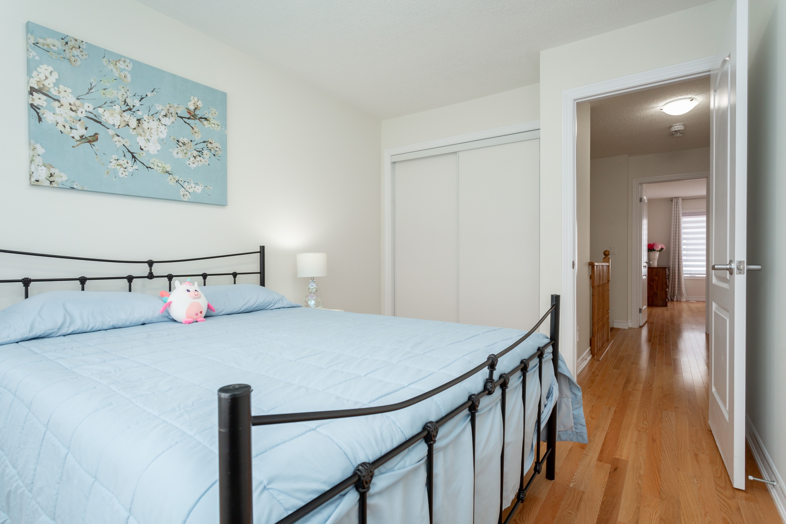 | This stunning modern freehold townhome is located in the highly desirable north Oakville, tucked away on a quiet private street. With over 1864 sq. ft of finished living space. This home offers an open concept layout; the main floor has a combined living and dining room and a bright kitchen. The kitchen features extended white cabinetry with a black quartz countertop, an oversized breakfast island with a double stainless steel sink, stainless steel appliances (one-year-old). Access to the garage that has a garage door opener. Walk-out to the fenced backyard. The 2nd-floor primary bedroom has a walk-in closet, 5 piece upgraded ensuite with a frameless glass shower, and a standalone tub. The second bedroom fits a queen-sized bedroom set, and the third (currently used as an office), plus a 4pc main bath. This home boasts light hardwood flooring throughout and a matching wood staircase, ceramic flooring in the foyer and bathrooms. The lower level has a spacious recreation/family room, a separate laundry room with sink and extra storage, utility room with lots of storage. Fenced Backyard in 2020, Interlocking driveway done in 2020. This master-planned community has it all; new schools, splash pad, tennis court, walking distance to major shops, transit, and minute’s drive to all the major highways. Small monthly road fee of $56.68 applies. |