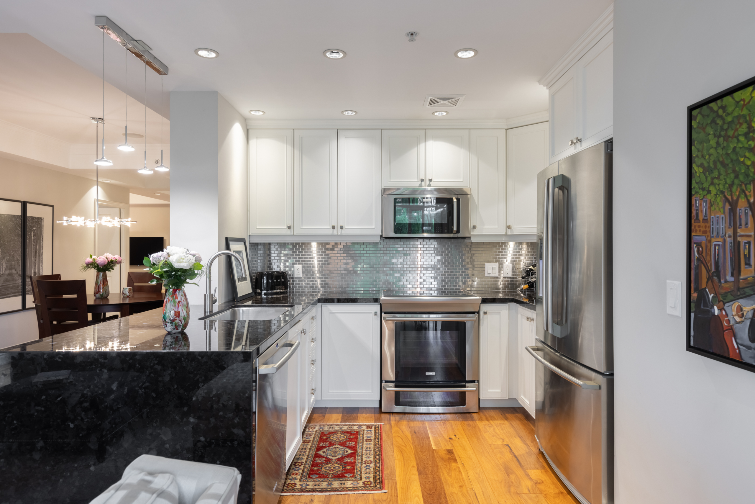 An excellent opportunity to own in an exceptional building. Windemere Manor is the quintessential boutique condominium. This bright and spacious suite offers 1312 sq. ft of living space and a large outdoor balcony with picturesque southwest views. Enter the sophisticated formal vestibule with beautiful, coffered ceilings and elegant textured wall coverings that set the tone for this condo. Enjoy the Open Concept Kitchen, Dining Room, and Great Room which provide a generous space for entertainment. Enjoy attention to detail and lots of upgrades in the impressive kitchen with top-of-the-line stainless steel appliances, large breakfast bar complete with Granite countertops and stainless-steel backsplash. The great room features a fireplace as its focal point with a sliding door to the outdoors and Automated Crestron Roller Blinds. A den area allows for a cozy space to curl up and watch TV at the end of a long day but could also be used as an office. Hand-scraped hardwood floors are featured throughout. The 9-foot ceilings have recessed pot lights and the 2 full bathrooms have gleaming marble tiles. Laundry and utility areas are located in the suite. The Principal retreat has a walkout to the balcony, a large walk-in closet, and spa like principle ensuite. Great building amenities include a Library, Dining Room, Rooftop Party Room, Outdoor Lounge area, Gym, and Sauna. Walking score of 10+ to downtown Oakville, shopping, and the amazing waterfront Tannery Promenade. This suite comes with 1 Parking Space and 1 locker. Do not miss out on this opportunity to own in this exclusive building